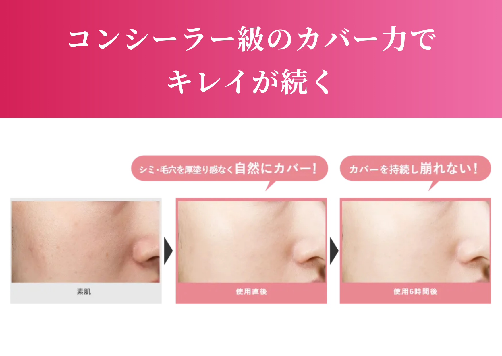 薄膜で厚塗り感なくシミ・毛穴をカバー