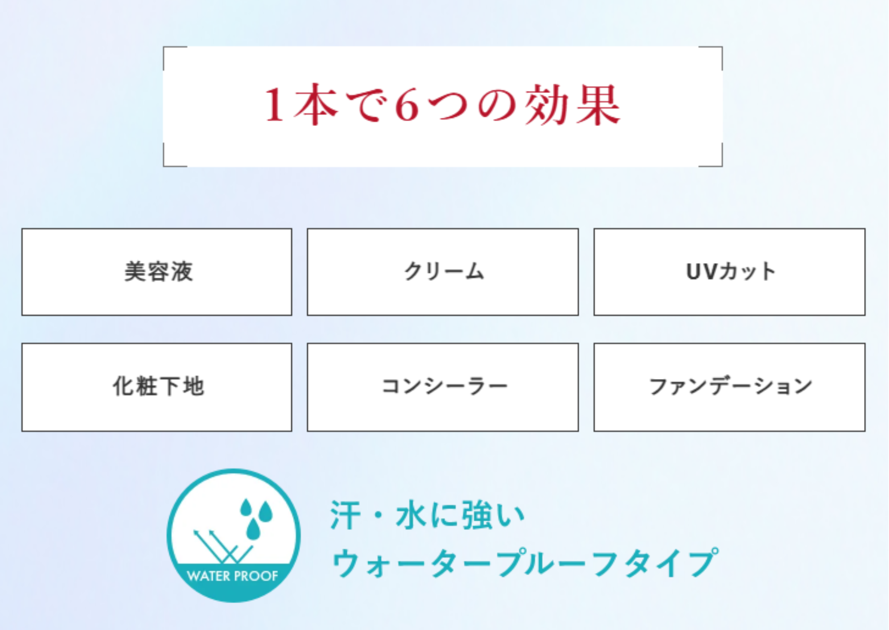 〇 1本で6つの効果(美容液・クリーム・UVカット・化粧下地・コンシーラー・ファンデーション)