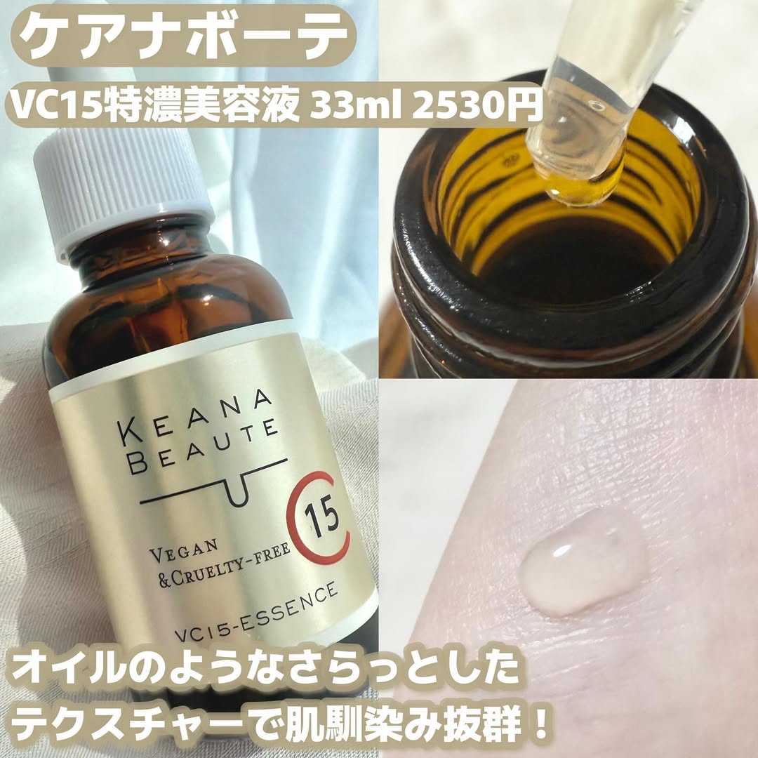 𓊆ドラストで買える!𓊇 ☽ケアナボーテ ☽VC15特濃美容液 33ml 2530円 -——————— なんとピュアビタミンCを15%も高濃度に配合した美容液𖠚ᐝ 高濃度だからこそ毛穴悩みだけじゃなく、くすみ・ハリ不足・キメの乱れといった肌悩み全体にアプローチしてくれる⸜🙌🏻⸝ オイルのようなさらっとしたテクスチャーで肌馴染み抜群! 皮脂抑制効果があるので顔のテカリが気になる方や特に脂性肌さんとは相性が良さそうだなと思いました☀️ ̖́- コスパも良く、ドラッグストアで手軽に購入できるので是非チェックしてみてください⺣̤̬︎︎ -——————— #PR #株式会社明色化粧品 #ケアナボーテ #美容液 #ビタミンC #毛穴ケア #毛穴対策 #高濃度美容液 #monipla #meishoku_fan #スキンケア #スキンケアマニア #スキンケア用品 #スキンケア紹介 #スキンケア好きさんと繋がりたい