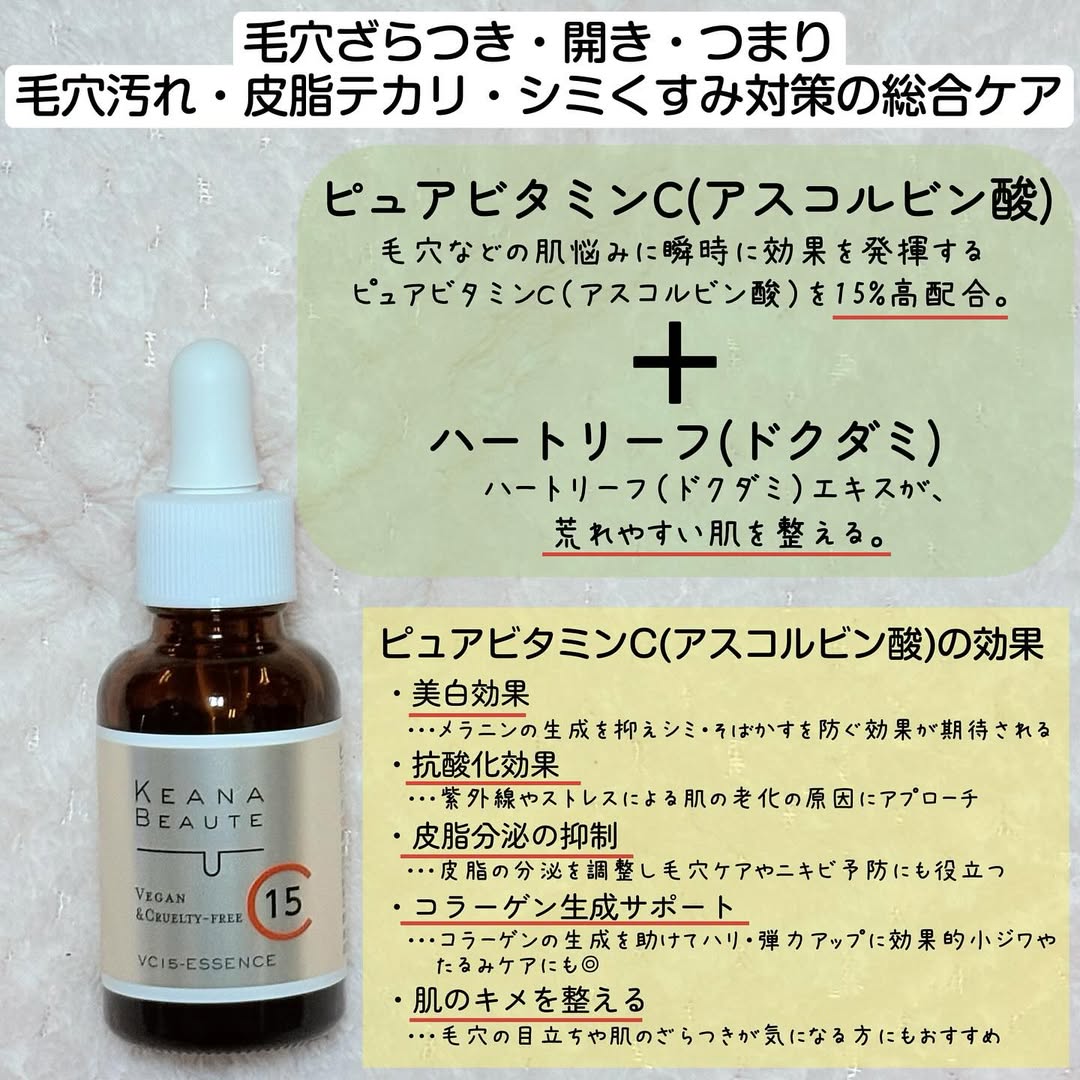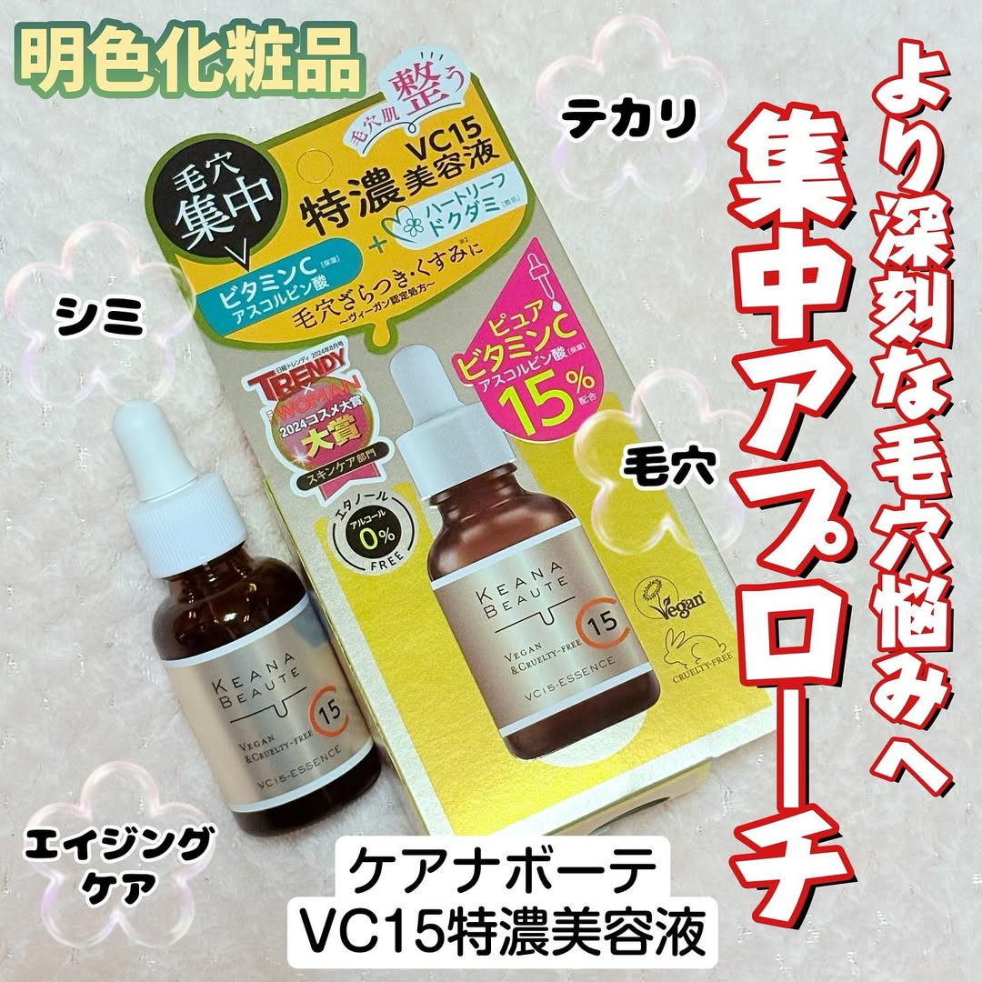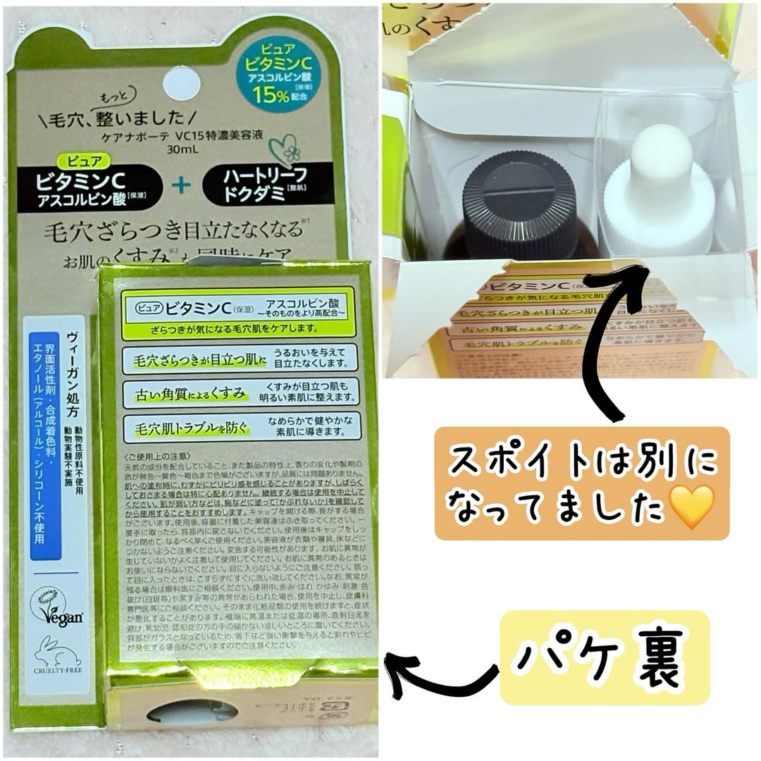 #PR 明色化粧品さんのモニターに当選し、【ケアナボーテ VC15特濃美容液】をお試しさせていただきました😊 より深刻な毛穴悩みへ集中アプローチ! ﹊ ﹊ ﹊ ﹊ ﹊ ﹊ ﹊ ﹊ ﹊ ﹊ ﹊ ﹊ ﹊ ﹊ ﹊ ﹊ ﹊ ﹊ ﹊ ﹊【ケアナボーテ VC15特濃美容液】 ピュアビタミンC15%高配合✨️深刻な毛穴ざらつき・くすみにアプローチ💡また、長期使用で明るいなめらか肌に導き、肌のハリ感もアップ?👏😳エイジングケア(年齢に応じたスキンケア)にもおすすめとの事💁♀️毛穴ケアだけでなく、総合肌ケアの美容液としてもご使用いただけます😍 使ってみた感想➞シャバシャバほどではないけど、緩めのテクスチャーなので垂れやすくはあります。でも手に出して塗る分には大丈夫な感じなので私的には問題なし🤭 ビタミンって変色が気になるけど、届いた時には若干黄色味帯びた色味になってた。パケには無色~黄色~褐色になるけど品質には問題なしと書いてありました🤔 香りはボタニカルアロマの高貴な香りとの事だけど、香りの知識が無さすぎて私には言葉で表現できない🤣柑橘系とかフローラル系では無いかな?💦どちらかというとフローラル系の香りかな😅私はとても良い香りだと思いました💛 多めの液で塗り広げると最初皮膚が液を弾く感じになりました。少しオイル感?もありヌルつきあり💡 でもしっかり塗りこめば問題ないし、ペタペタ感もほぼ感じなかったので(オイルっぽいヌルつきは少し残るかな)ピュアビタミンC高配合の美容液の中では使いやすい方かな?と思いました😊 この美容液は ✅小鼻・頬の毛穴の開きが気になる方 ✅肌がゴワついて、化粧ノリが悪い方 ✅夕方になるとくすんで見える方 ✅肌のハリがなくなってきた方 にオススメみたいです🥰 ちなみに 内容量:30mL(Amazon限定品は33mL) 希望小売価格:2,530円(税込) です☺️ 私は結構高配合ビタミンだと肌に合わない物が多いし、ドクダミ系も物によっては荒れたりするので避けてるけど(成分の確認不足で応募してしまった🙏💦)これは今のところ大丈夫そう😳ピュアビタミンCだからかな? ただ朝晩使用可能との事だけど今は一応数日おきの夜のみの使用にしてます🙏 毛穴はやっぱり気になるので、肌に大丈夫そうだったら使用回数も増やしていきたいなと思いました❣️ この度はお試しさせていただきありがとうございました😊 #PR #株式会社明色化粧品 #ケアナボーテ #美容液 #ビタミンC #毛穴ケア #毛穴対策 #高濃度美容液 #monipla #meishoku_fan