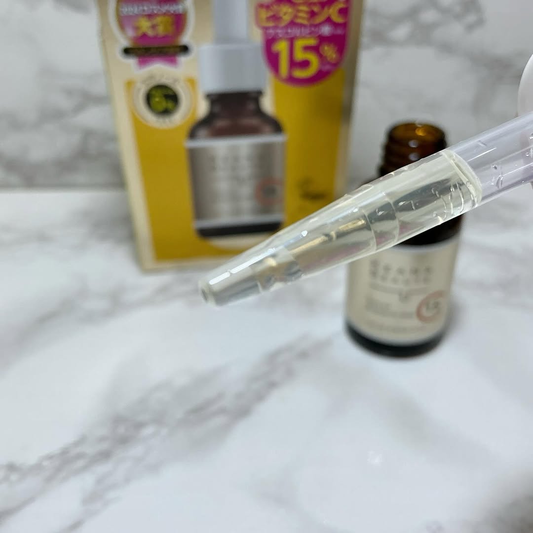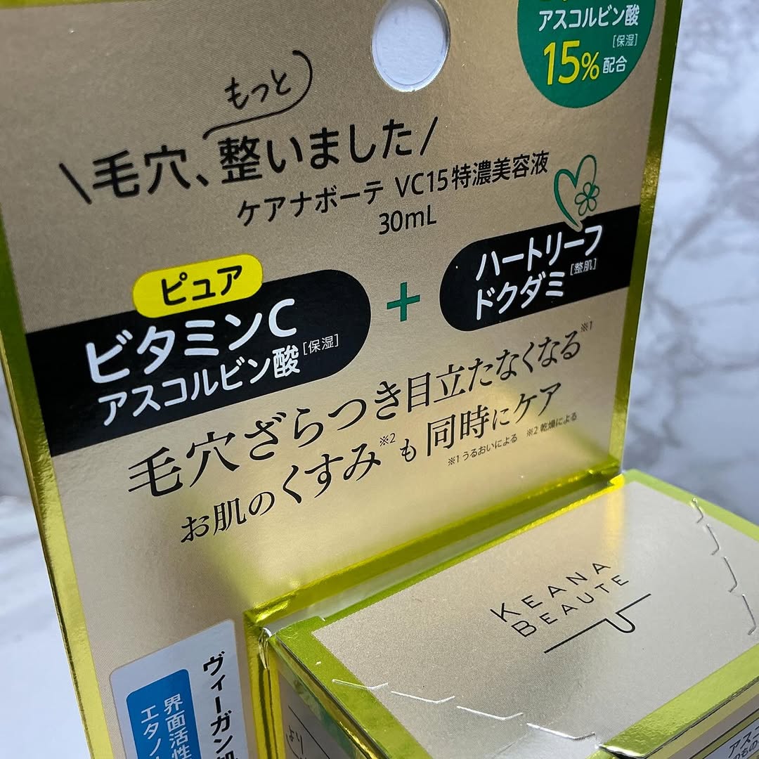 株式会社明色化粧品 ケアナボーテVC15特濃美容液 ピュアビタミンC*の効果で毛穴をキュッと引き締め、毛穴悩みだけでなく「くすみ」「ハリ不足」「キメの乱れ」といった肌悩み全体にアプローチしてくれる高濃度美容液です。(*アスコルビン酸) 《特徴》 🔶肌に塗るとすぐに効果を発揮する『ピュアビタミンC*』が15%も配合!『ピュアビタミンC*』には ・美白 ・抗酸化 ・皮脂分泌の抑制 ・コラーゲン生成サポート ・肌のキメを整える 効果があり、使い続けることで高い効果を実感することが期待できます。 🔶ハートリーフ(ドクダミ)成分配合。ドクダミには殺菌・抗菌作用、抗酸化作用、抗炎症作用、肌のターンオーバー促進、保湿力があり、健やかな肌へと導く効果が期待できます。 🔶ボタニカルアロマの高貴な香り 《使い方》 化粧水等で肌を整えた後、手のひらに適量をとり肌に優しくなじませます。 《使ってみた》 ◆容器は茶色のガラス製、取り出し口はスポイトタイプ。紫外線の影響や空気に触れることにによる酸化を極力防ぐ使いやすい設計になっています。 ◆手にとるとサラッとしたテクスチャーですが、肌にのせると最初はオイルのような感じ。スルスルっと伸び広がるのでそのままなじませていくとしっとりとしていきますがベタつきはありません。 ◆全顔に使えるとのことですが、私の場合使い始めに少しピリッとした刺激が感じられたので今のところは特に毛穴の開きが気になる部分にだけ使うことに‥。今後慣れたら徐々に範囲を広げていき、顔全体のくすみが解消できたら嬉しいなー、と思っています。 ◆口コミサイトなどで香りには賛否両論あったのでちょっと心配していましたが、私は心地よく使うことができました。 ◆使い始めてまだ日が浅いので毛穴への顕著な変化はまだわかりませんが、初めて使ったときから感じられる肌のつるんとした手触りには大満足!お手頃価格で手軽に購入できるのでこれなら毎日続けられそうです。 株式会社明色化粧品 ケアナボーテVC15特濃美容液 は、 ✅小鼻・頬の毛穴の開きが気になる ✅肌がゴワついてメイクのノリが悪い ✅夕方になると肌がくすんで見える ✅肌のハリがなくなってきた などのお悩みをお持ちの方に使いやすい美容液❗️ 全国のドラッグストアやAmazonで購入できるので、気になる方は是非チェックしてみて下さいねー👋 #PR #株式会社明色化粧品 #ケアナボーテ #美容液 #ビタミンC #毛穴ケア #毛穴対策 #高濃度美容液 #monipla #meishoku_fan