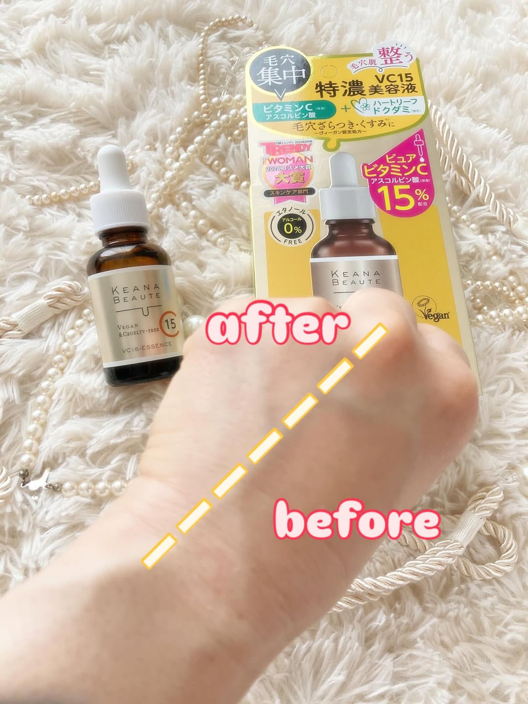 🕊𓂃 𓈒𓏸◌ ✼••┈┈••✼••┈┈••✼••┈┈••✼••┈┈••✼ 明色化粧品様のケアナボーテ VC10濃美容液を愛用中です🤗💕 ピュアビタミンC10%高配合の美容液です🤗 熱くなったり寒くなったり、お肌の皮脂婚トロル機能がエラーを起こすのか、 毛穴に皮脂が詰まりやすかったり部分的には乾燥したりと、 肌トラブルが起こりやすく、私のお肌にはビタミンCが欠かせません。 色んなビタミンCの商品を使ってきましたが、 こちらはビタミンCと表記される中でも特に即効性の高いピュアビタミンCらしいです✨ ベタつきなく香りも嫌ではなく感覚としては今までで1番好き💖 さらっとしたテクスチャーで色んなお化粧品に加えやすいのもgood🤗💕 使用1週間ほどの感想です。 付けたら速攻毛穴キュッなど目に見える変化⇒ナシ 朝使用後メイクモチや毛穴の見え方も特に変わり⇒ナシ ピリピリと刺激を感じることもなく、 これは低刺激&たーっぷり使っても2ヶ月くらいはもちました。(私の場合) 開封後の冷蔵庫保管の必要もなく、コスパ抜群、 しかもスポイト容器で衛生的! メンズにも良さそうな爽やかな香りでたまに旦那さんもコッソリと使っているらしい・・・😏 夫婦そろってケアナボーテでケアしてます💫😁 ちなみに、この美容液を使うときは保湿はしっかりと! 毛穴ケア目的なので潤いは物足りないので、40代後半の私はしっかりと化粧水で保湿してます。 どくだみが入っていることによる鎮静効果も作用してると思いますが、 ビタミンの力で皮脂の分泌が穏やか、Tゾーンのテカリがきにならなく 肌が荒れもなくりました。 約3か月使ってみて、 毛穴が大分目立たなくなってきたような??? くすみが取れてきたような??? まだまだ使って毛穴レス目指します~😚💞 💛おすすめの理由💛 🔸さらりとしたテクスチャーで肌なじみがよく、べたつかない。 🔸コラーゲンの生成をサポートするため、継続使用で肌がふっくらハリ感がアップし、毛穴も引き締まります。 🔸シミやくすみにもアプローチ。明るい透明感のある肌へ。 🔸動物性原料不使用・動物実験不実施・ハラール認定処方・界面活性剤不使用・合成着色料不使用・シリコーン不使用。 皮脂の過剰分泌やそれによる肌荒れで悩んでいる方におすすめします。 季節の変わり目や多湿で肌荒れを起こしている私にはありがたい商品です。 素敵な商品の出会いに感謝します✨ ありがとうございました😚💞 *:..。o○★○o。..:*゚*:..。o○★○o。 明色化粧品 ケアナボーテ VC10濃美容液 容量:30ml 価格:1,980円 *:..。o○★○o。..:*゚*:..。o○★○o。 #PR #株式会社明色化粧品 #ケアナボーテ #美容液 #ビタミンC #毛穴ケア #毛穴対策 #高濃度美容液 #monipla #meishoku_fan