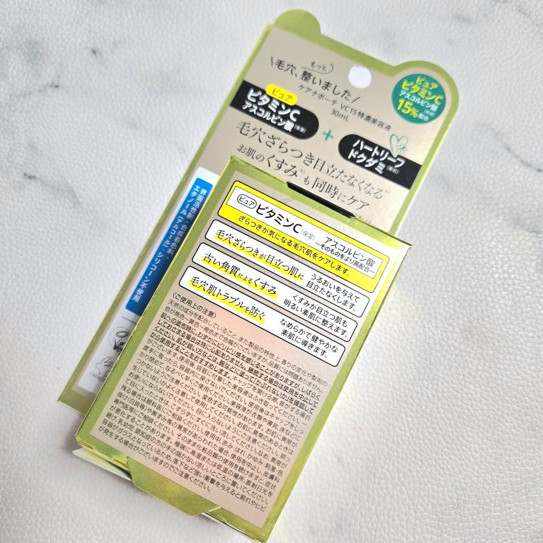 * ピュアビタミンCで本気の毛穴ケア! / ケアナボーテ VC15特濃美容液 \ お試しさせていただきました☺ ピュアビタミンC15%高配合の美容液だよ 深刻な毛穴ざらつき・くすみにアプローチしてくれるんだって! また、コラーゲンの生成をサポートするため、ハリ感のアップ、エイジングケア(年齢に応じたスキンケア)にもおすすめなんだって 毛穴ケアだけでなく、総合肌ケアの美容液としても使えて便利! ほんのり黄みがかったセラムで、オイルっぽいテクスチャー 化粧水ののあとつけるとなじみがいいよ〜 ボタニカルアロマの香りがさわやか🌿 シミも毛穴も気になるので、続けていきたいと思います♪ ありがとうございました♡ #PR #株式会社明色化粧品 #ケアナボーテ #美容液 #ビタミンC #毛穴ケア #毛穴対策 #高濃度美容液 #monipla #meishoku_fan
