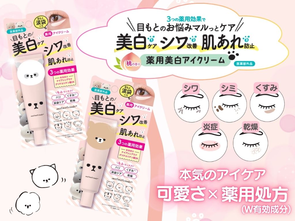 ✩✩✩ ˗ˏˋ モフモフレンズ薬用美白アイクリーム ˎˊ˗ ↪︎ ( @meishoku_corporation ) 目もとの乾燥や小ジワが気になるあなたに✨ 夕方のくすみや疲れた目もとに、 ふわっと優しくアプローチするアイクリーム💆♀️ ✔️ W有効成分でシワ・くすみ・乾燥をケア ナイアシンアミド×グリチルリチン酸2Kが肌に優しく働きかける✨ ✔️ 6つのアイケアフレンズ ヒアルロン酸・セラミド・コエンザイムQ10・コラーゲン・ツボクサ・ドクダミがしっかり保湿 🫧 ✔️ ベタつかない軽いテクスチャー 朝のメイク前にも、夜のおやすみ前にもぴったり👌 乾燥小ジワが気になる時の救世主.ᐟ.ᐟ 桃の香りにも、可愛い見た目も癒されます 💕 #PR #株式会社明色化粧品 #モフモフレンズ #アイクリーム #シワ改善 #美白ケア #肌荒れ防止 #monipla #meishoku_fan 2025/08/31