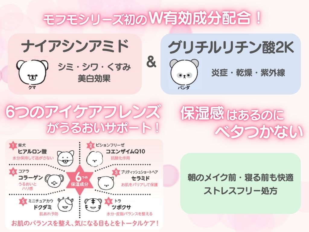 モフモフレンズシリーズ初【ナイアシンアミド&グリチルリチン酸2K】W有効成分配合。