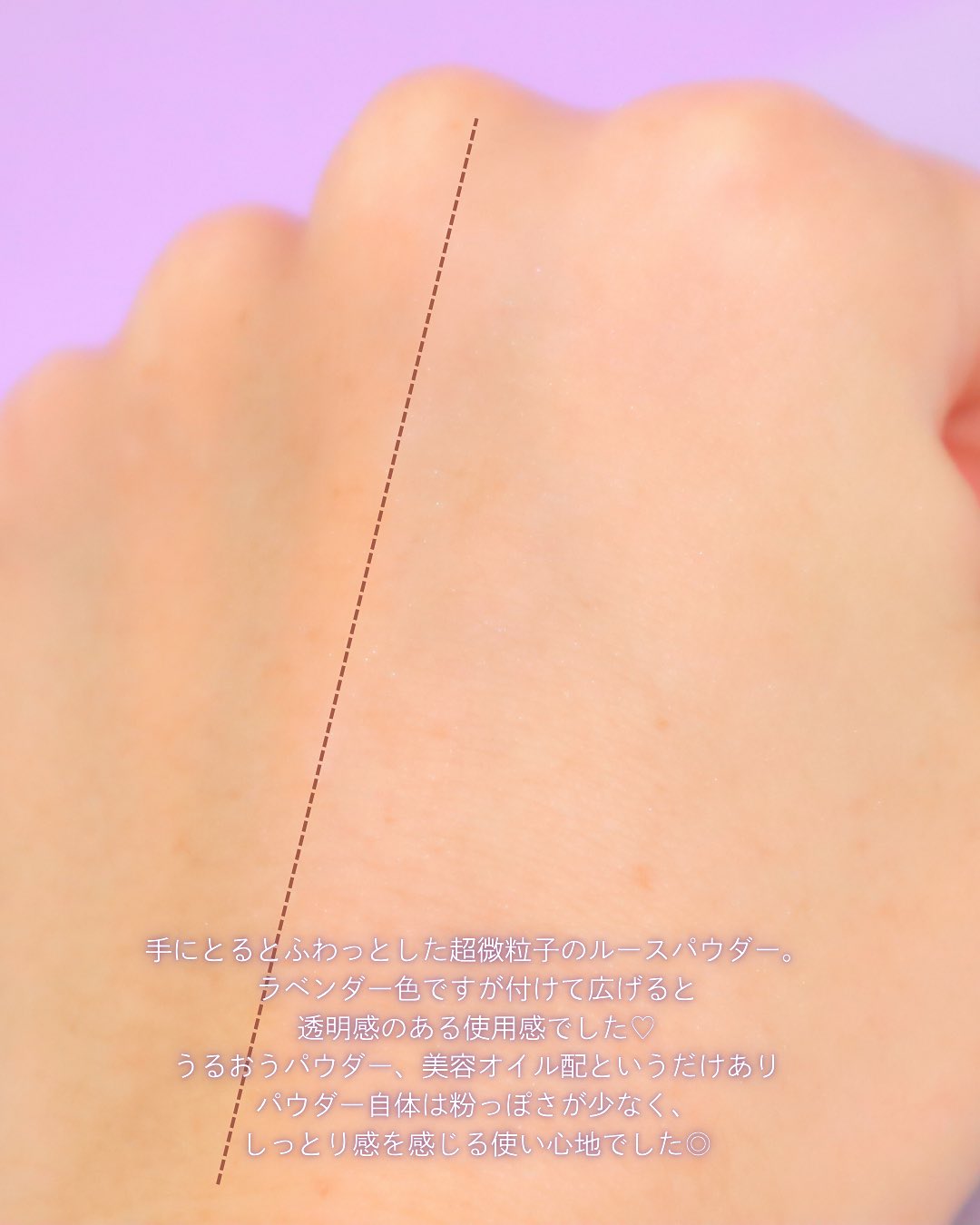 モイストラボ ルースパウダー〈くすみ防止タイプ〉 を使ってみたのでレビューします✨ こちらは、 \くすみレス肌を叶える🤍/ 透明感溢れるラベンダーパウダーなんだそう! まず開けてびっくりしたのが、 粉質のなめらかさでした\( ˆoˆ )/ 指先に取るととても細かい粒子で、 ふんわり軽やかなのに触れるとほんのりしっとり感があって、まさにシルクみたいなテクスチャーに感じました◎ 肌にのせると、ラベンダーカラーの微細なパールが やさしく光を拾ってくれて、黄ぐすみが ふわっと飛ぶような使い心地です! トーンアップというより、自然に明るく澄んだ肌に 見える仕上がりという印象でした🥺💖 ラベンダーカラーなので 白浮きが気にならないのも嬉しいポイントでした。 付属のパフはふわふわで厚みがあり、 粉をしっかり含んでくれるので使いやすいなぁと 感じました◎ ベースの上から軽く押さえるようになじませると、 粉が肌にぴたっと密着してくれるような 使い心地です🥺❣️ 付属のパフではなく、 ブラシを使って、サッと広げるとさらにナチュラルに 仕上がって、シーンに合わせて使い分けられるのも便利です! 仕上がりはどちらかといえば セミマット寄りな印象です🥺✨ パッケージはシンプルで清潔感があり、 持ち運びやすいコンパクトサイズ。 SPF30・PA++のUVカット効果もあるので、 ちょっとした外出や日常使いには十分心強いと思いました。 あと、 洗顔料で簡単オフできるのも嬉しいポイント😊 全体的に、ナチュラルに仕上げたい日や 顔色をパッと明るく見せたいときにとても 便利そうです! 乾燥しやすい方でも粉っぽさが出にくく、 ナチュラルメイク派さんにもおすすめです♡ こんな方にもおすすめです🤍 ☑ 黄ぐすみで顔色が暗く見える ☑ 毛穴を自然にカバーしたい ☑ パウダーは乾燥するから苦手 ☑ 紫外線対策しながら透明感も出したい ☑ マスク移りしにくいパウダーが欲しい ぜひ、気になる方は チェッしてみてくださいね\✩⃛/ #PR #株式会社明色化粧品 #モイストラボ #ルースパウダー #透明感 #毛穴レス #くすみ防止 #パープル #monipla #meishoku_fan