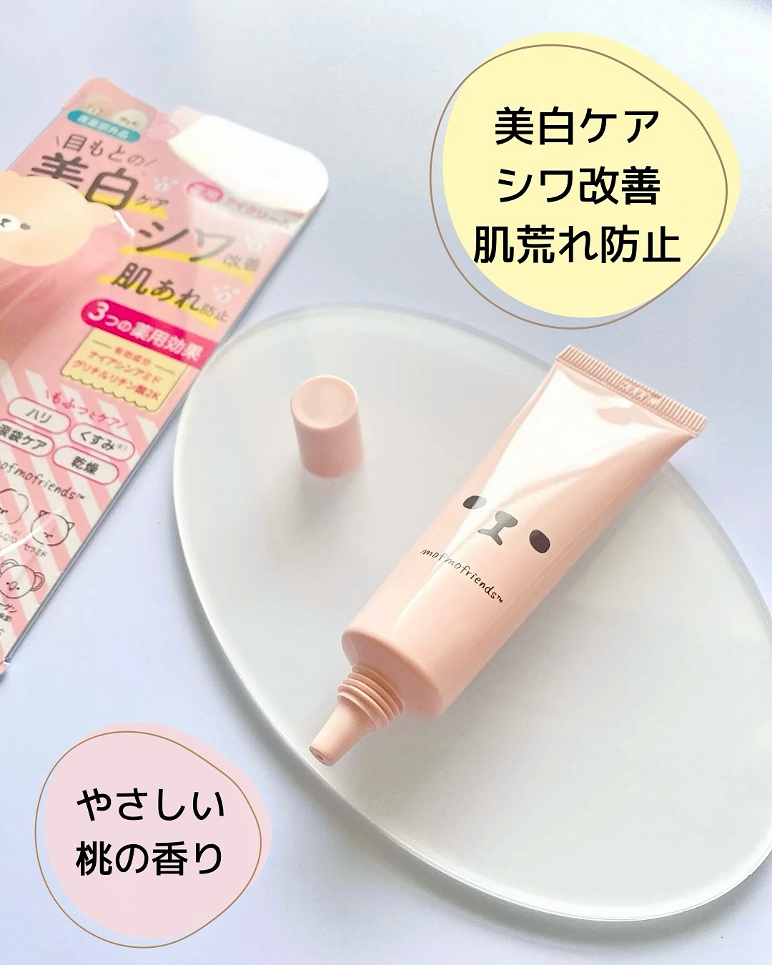 明色化粧品 モフモフレンズ 薬用美白アイクリーム 𓂃𓈒𓏸𓂃𓈒𓏸𓂃𓈒𓏸𓂃𓈒𓏸𓂃𓈒𓏸𓂃𓈒𓏸 この可愛いパッケージ、癒されるっ💕 それだけじゃありません♪ 「美白ケア」「シワ改善」「肌荒れ防止」のキーワードにも、 惹かれてしまいます🤗 ということで、早速お試ししてみました。 クリームはなめらかでスーッと肌に馴染みます。 目のまわりもしっとり柔らかくなる感じ。 そんなに重めではないけど、ちゃんと保湿感あります。 ほんのり香る桃の香りも◎🍑 低刺激処方なのも嬉しいです! W有効成分「ナイアシンアミド(シワ×美白有効成分)」× 「グリチルリチン酸2K(肌荒れ有効成分)」配合。 ★こんな方に ✅涙袋をぷっくり見せたい方 ✅クマ・くすみで疲れて見える方 ✅アイメイクをもっと映えさせたい方 ✅季節の変わり目で乾燥が気になる方 ★6つの保湿成分 ①ヒアルロン酸…水分保持して逃がさない ②コエンザイムQ10…抗酸化作用 ③セラミド…お肌をバリアして保護 ④ツボクサ…水分・皮脂バランスを整える ⑤ドクダミ…肌荒れ予防 ⑥コラーゲン…うるおいとハリ感 癒やされながら、目もとのお悩、 本格ケアしてみませんか? @meishoku_corporation #PR #株式会社明色化粧品 #モフモフレンズ #アイクリーム #シワ改善 #美白ケア #肌荒れ防止 #monipla #meishoku_fan #プチプラコスメ #アイケア #目元ケア #美容好きさんと繋がりたい #コスメすきな人と繋がりたい