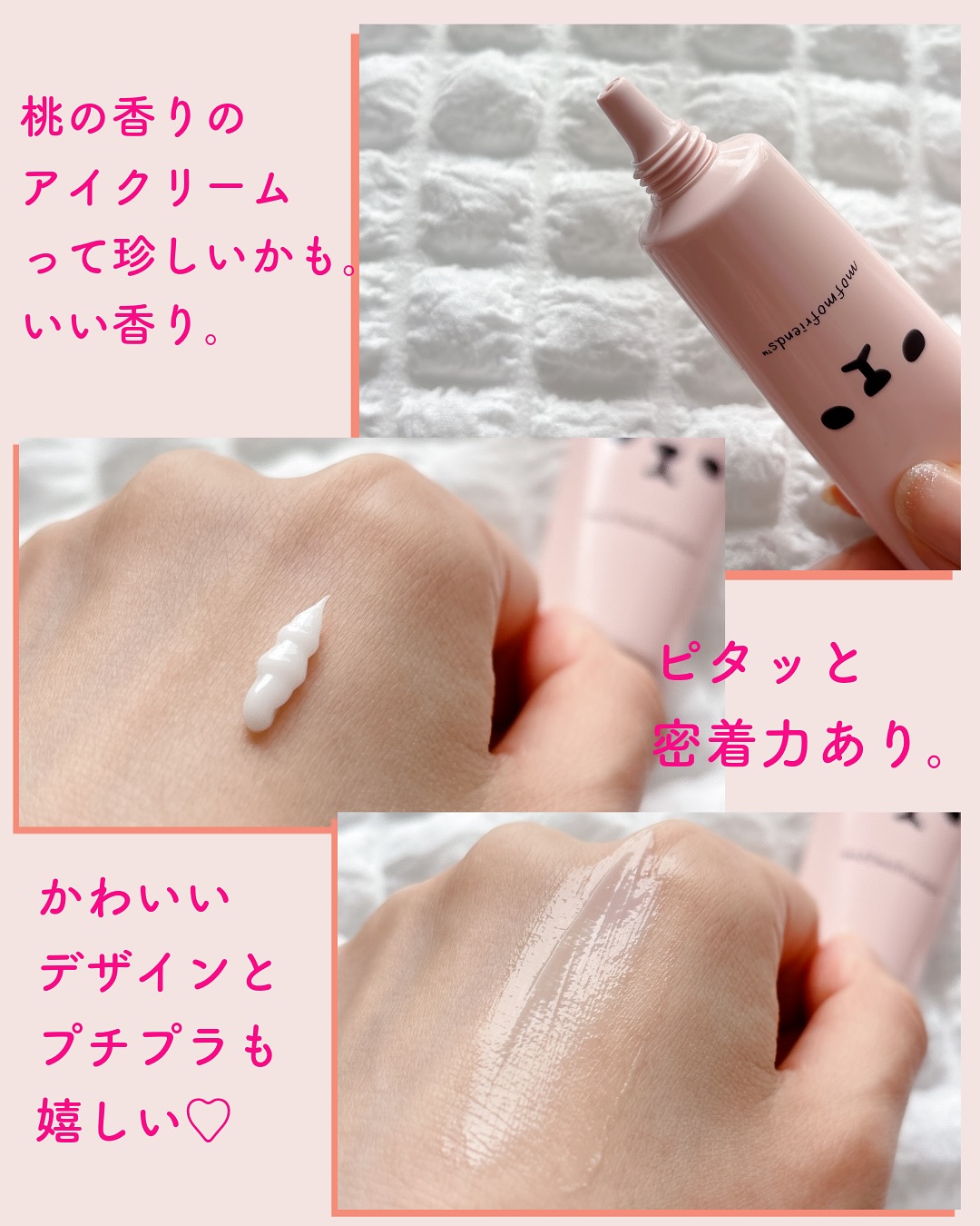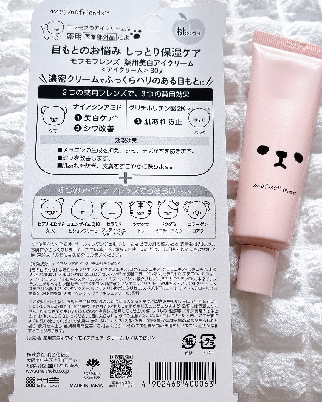 「モフモフレンズ×明色」シリーズの かわいいだけじゃない実力派アイクリーム モフモフレンズ 薬用美白アイクリーム 〈医薬部外品〉 モフモフレンズシリーズ初の 【ナイアシンアミド&グリチルリチン酸2K】 W有効成分配合で、 美白ケア*&シワ改善&肌あれ防止してくれるそう。 桃の香りがするアイクリームって珍しい。 強くなくていい香りです。 クリームはピタッと密着感があり、しっとりとした使用感。 プチプラも嬉しい💕 かわいい仲間たちと愛され目もと目指そう✨ 販売名:薬用美白ホワイトモイスチュア クリーム b〈桃の香り〉 *美白とは、メラニンの生成を抑え、シミ、そばかすを防ぐこと。 #PR #株式会社明色化粧品 #モフモフレンズ #アイクリーム #シワ改善 #美白ケア #肌荒れ防止 #monipla #meishoku_fan #アイケア #目元ケア #プチプラコスメ #プチプラアイクリーム #明色 @meishoku_corporation