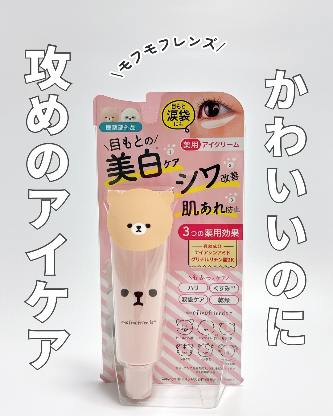 モフモフレンズ薬用美白アイクリーム @meishoku_corporation 可愛いだけじゃない。本気の“攻めアイケア” モフモフレンズシリーズ初 ナイアシンアミド&グリチルリチン酸2K W有効成分配合したアイクリーム👀 こっくりとした硬めのテクスチャークリームが 目元にピタッと密着✨️ 保湿力はあるのにベタつきにくく、 朝のケアにも使い易い☀️ 気になる方はチェックしてみてね! #PR #株式会社明色化粧品 #モフモフレンズ #アイクリーム #シワ改善 #美白ケア #肌荒れ防止 #monipla #meishoku_fan