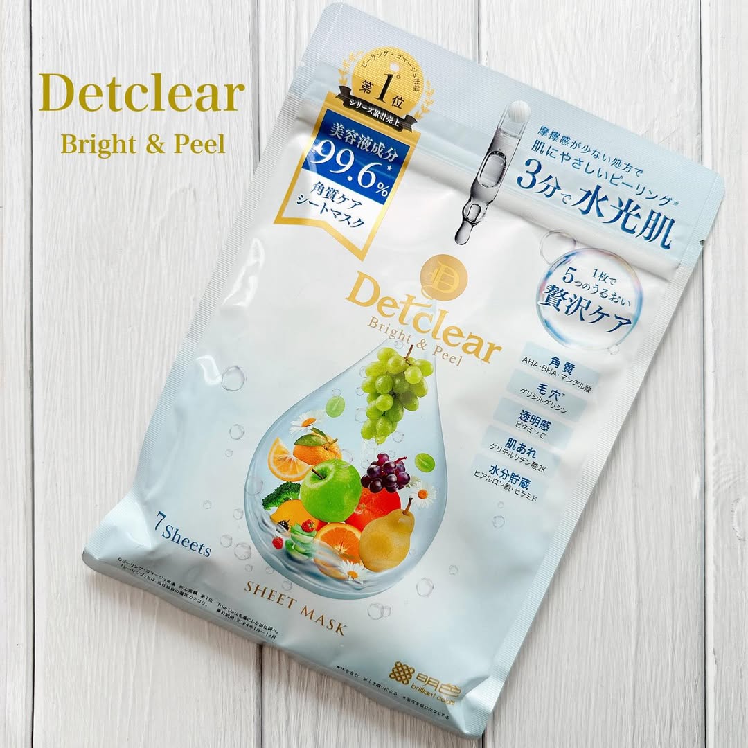 (株)明色化粧品様 DETクリア ブライト&ピール シートマスクのご紹介です! @meishoku_corporation @detclear_official 【内容】 貼って3分!つるんと水光肌 美容液成分99.6%のピーリングマスク 美容液成分99.6%配合の贅沢ピーリング マスク。摩擦感が少ない処方で肌にやさしく、 角質・毛穴・透明感・肌あれ・水分貯蔵の 5つのケアを1枚で完了。忙しい朝晩にも 嬉しい3分の時短ケア。優雅で爽やかな シャルドネの香りに包まれながら、肌も心も リフレッシュできるご褒美スキンケアを叶えます。 ◆美容液成分99.6%配合の贅沢設計! ◆1枚で5役 角質ケア・毛穴ケア・透明感・鎮静・保湿 ◆ピーリング×保湿×肌荒れケアが1度に叶う ◆3分で完了の時短ケア ◆やさしいピーリング処方 パラベン・アルコール・鉱物油・紫外線 吸収剤・シリコンフリー 【価格・容量】 880円(税込)/7枚入 【香り】 シャルドネの香り 【使用した感想】 \貼って3分でつるんっ💫/ 忙しい日もご褒美気分になれる DETクリア ブライト&ピール シートマスクを お試ししました🍇 とにかく時短なのにしっかりケアできるのが 嬉しかったです🥹3分でOKなので、朝の スキンケアやお風呂上がりにも使いやすく、 剥がしたあとのお肌がつるんとなめらかで 思わず触れたくなる仕上がりでした💆♀️💫 摩擦感のないマスクで、ピーリングなのに 刺激を感じにくく、使い心地がとてもやさしく 感じるし、シャルドネの香りもふんわり爽やか で、疲れた日でも気分までリフレッシュできます🍃 使い続けるほどに毛穴ケアや肌のごわつき にも◎忙しい毎日にぴったりの時短マスクです💛 #PR #株式会社明色化粧品 #DETクリア #シートマスク #毛穴ケア #角質ケア #水光肌 #ビジュ上げパック #monipla #meishoku_fan