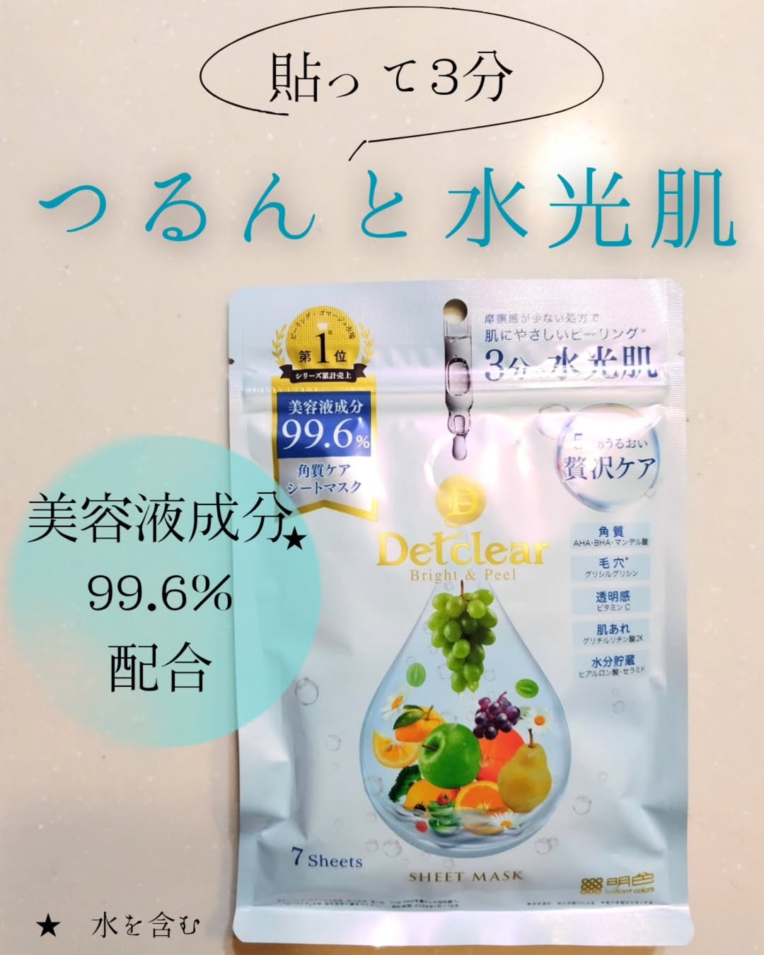 ✔️最近お肌がカサつく… ✔️スキンケアが浸透しにくい… ✔️くすみ・ごわつきが気になる… そんな季節の変わり目にぴったりなのが \ピーリング市場12年連続No.1/ 角質ケアの名門「DETクリア」 DETクリア ブライト&ピールシートマスクです♡ 封を開けた瞬間からシャルドネの上品な香りが✨ 1枚で 角質ケア・毛穴ケア・透明感・鎮静・保湿 が叶います! 時間は3分でオッケー🙆 美容液たっぷりなので密着度も高く、 その後に使ういつものスキンケアの浸透が良くなった感じがしました♡ #PR #株式会社明色化粧品 #DETクリア #シートマスク #毛穴ケア #角質ケア #水光肌 #ビジュ上げパック #monipla #meishoku_fan