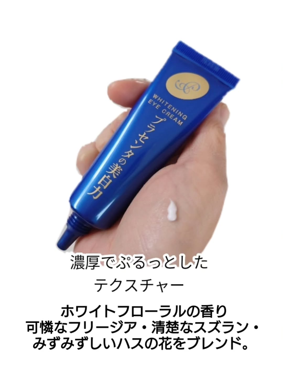 乾燥の季節、気になる目もとの乾燥やホウレイ線に! ぬるだけWの集中美容液✨ プラセホワイター 薬用美白アイクリーム 使ってみました👀 プラセンタ特濃配合の薬用美白アイクリームです✨ 〈特長〉 薬用美白※1×エイジングケア※2をWで叶える ※1 メラニンの生成を抑えシミ・そばかすを防ぐ ※2 年齢に応じた、ハリやうるおいのお手入れのこと 100%国産「プラセンタ」高配合によりお肌にハリ・透明感を与えるそうです。 〈感想〉 細い容器でポイント使いしやすいです。 こっくりとぷるっとしたテクスチャー。 目もとやホウレイ線まわりの肌にすっと馴染み、ぴたっと密着。 濃密クリームなのにベタつかないから、夜のスキンケア時はもちろん朝のメイク前にも使いやすいです♪ ハリ感のある目もとを叶えたいから使い続けてみます😌 #PR #株式会社明色化粧品 #プラセホワイター #シミ対策 #シワ改善 #アイケア #アイクリーム #美白ケア #エイジングケア #monipla #meishoku_fan