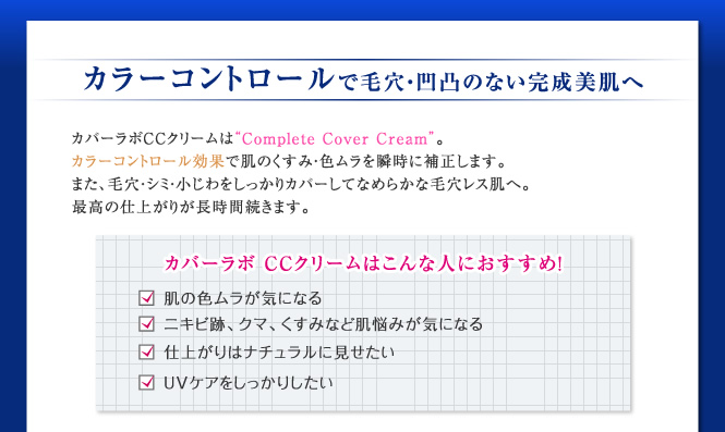 毎朝、忙しい! 上の子のお弁当の用意、下の子の離乳食、 お着替え、幼稚園の送りなど とにかく、自分のメイクは手間かからないように そんなときには、CCクリームがあれば、 助かります!!! カバーラボ CCクリーム<ナチュラルカラー> 化粧水のあと、これだけでベースメイクが完成!… 2014/04/16