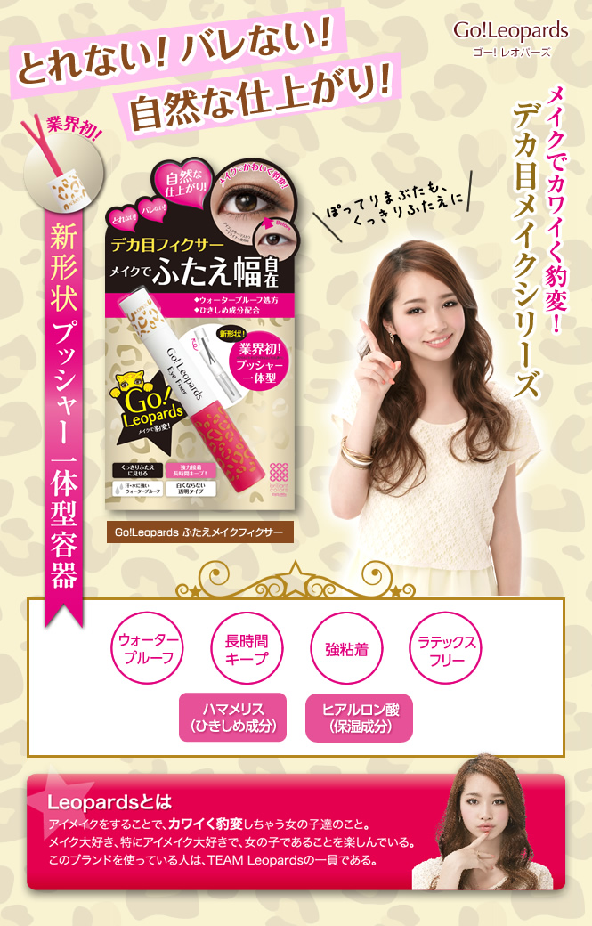 メイクでカワイく豹変{%びっくり1webry%}「Go{%びっくり1webry%}Leopardsシリーズ」の ふたえメイクフィクサー(ふたえまぶた用化粧液)を使ってみました{%ハート4webry%} これを使うと、くっきりふたえが簡単にできちゃいます{%笑いwebry%} 業界初… 2015/10/08