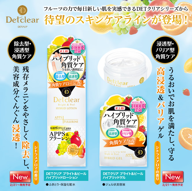 くすみ除去”と “うるおい浸透”の2つの機能を備えたローション「DETクリア ブライト&ピール ハイブリッドローション」 と “うるおい浸透”と “外的刺激バリア” の2つの機能を備えたゲル「DETクリア ブライト&ピール ハイブリッドゲル」をセットにして50名様に!