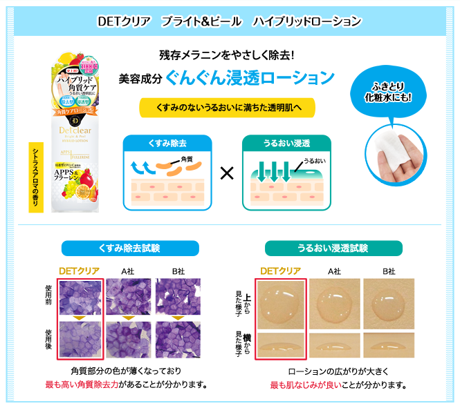 くすみ除去”と “うるおい浸透”の2つの機能を備えたローション「DETクリア ブライト&ピール ハイブリッドローション」 を100名様に!