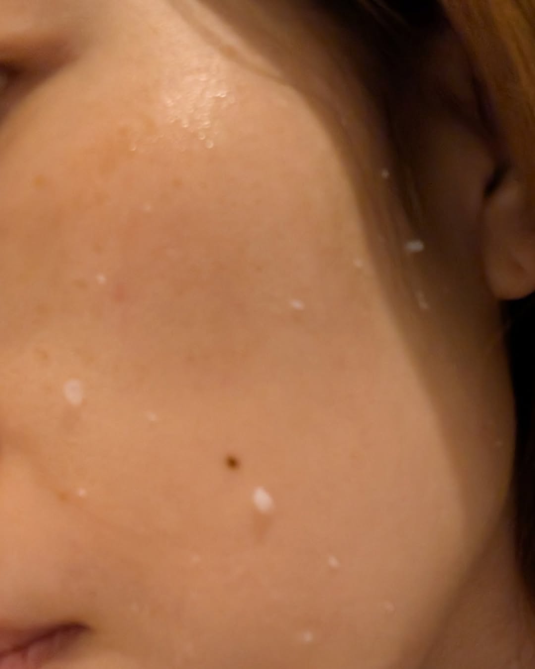 お肌にのせてくるくるしているとポロポロと塊が出てきます。洗い流したらツルンとした感じですごく気持ちいい肌触りに!