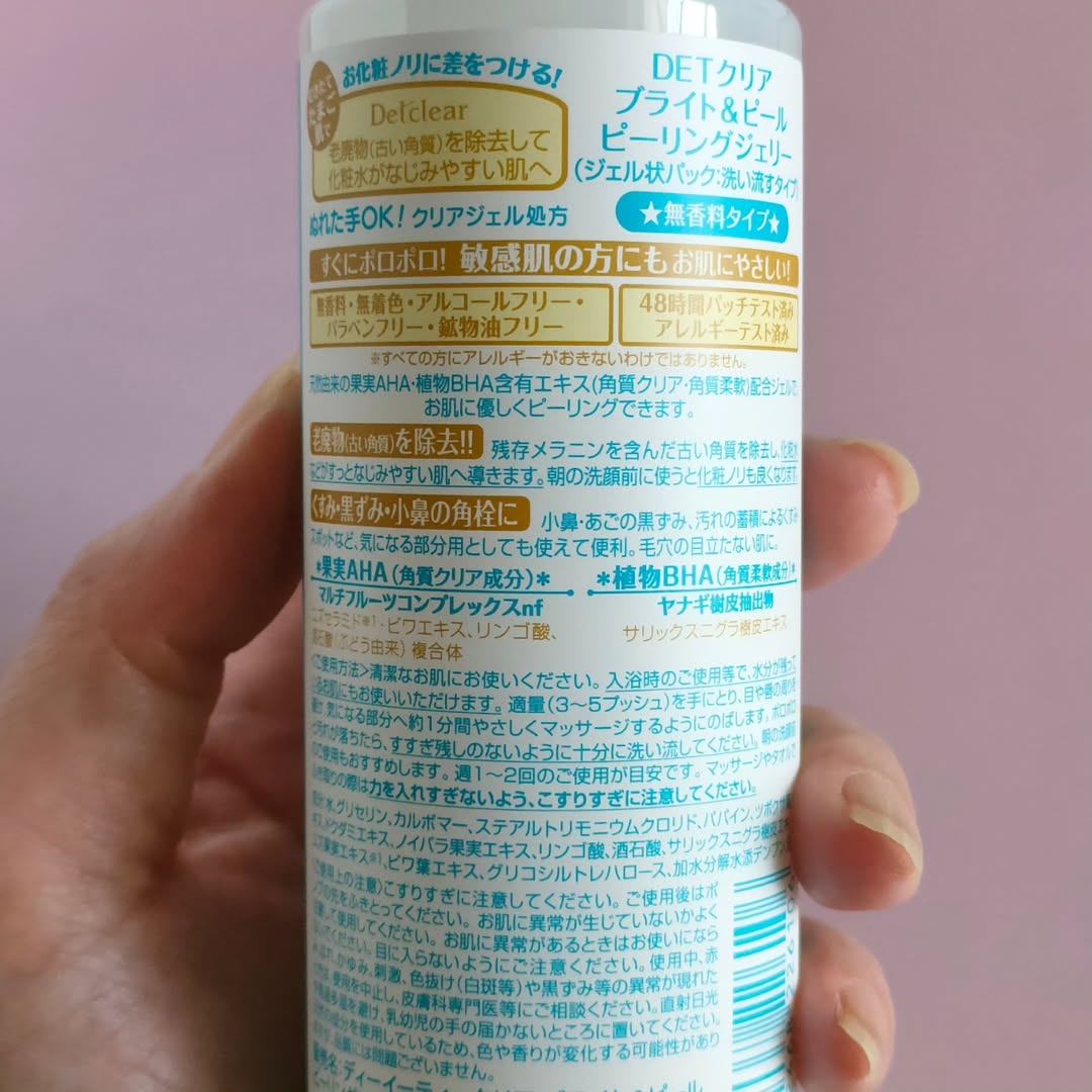 「DETクリア ブライト&ピール ピーリングジェリー」シリーズ6品のなかで、特にマイルドで香りもついていないタイプです。