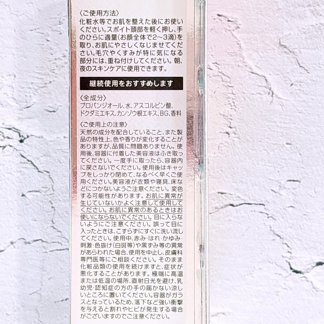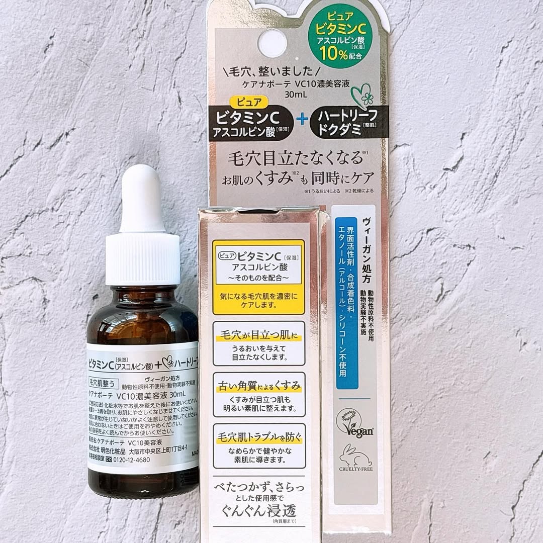 \毛穴、整いました/ 毛穴が目立たなくなる◎ ピュアビタミンC10%高配合の美容液。 高配合のビタミンCは水溶性のため、さらりとしたテクスチャーで肌なじみがよく、べたつきません。 コラーゲンの生成をサポートするため、継続使用で肌がふっくらしてハリ感がアップします。 毛穴をひきしめ、シミやくすみにもアプローチし、明るい透明感のある肌に導きます。 動物性原料不使用・動物実験不実施・ハラール認定処方・界面活性剤不使用・合成着色料不使用・シリコーン不使用