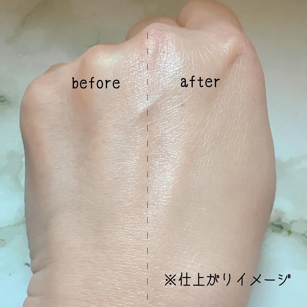 ピンクベージュのような、赤みがかった色。肌に広げてみるとほんのりピンク。と、ツヤ感※のある仕上がりで、トーンアップ※もして見えます✨️