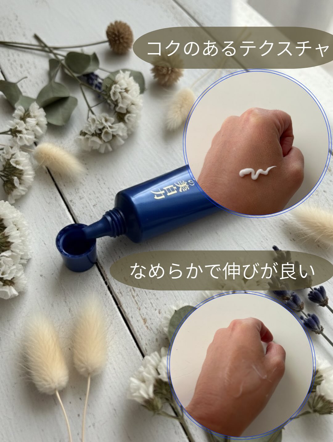 先細のノズルから出るクリームは、コクがあるのになめらかで伸びが良く、肌にすっと馴染んでくれます。ベタつきにくいので、朝でも夜のケアでも使えるのが嬉しい❤️