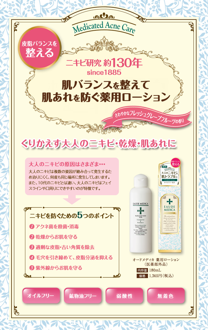 大人のニキビプログラム「オードメディカ」シリーズから、肌バランスを整えて肌あれを防ぐ『薬用ローション』を200名様にモニタープレゼント!!