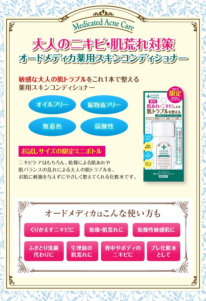「オードメディカ 薬用スキンコンディショナー ミニボトル」のモニターを、200名様募集いたします!