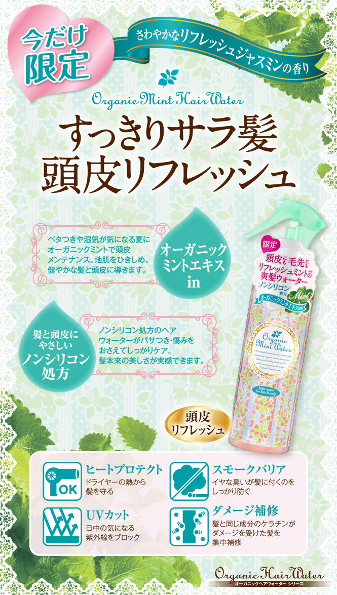 オーガニックペパーミントエキス配合で頭皮にも毛先にも使える爽髪ウォーター『オーガニックミントヘアウォーター』を50名様にモニタープレゼント!
