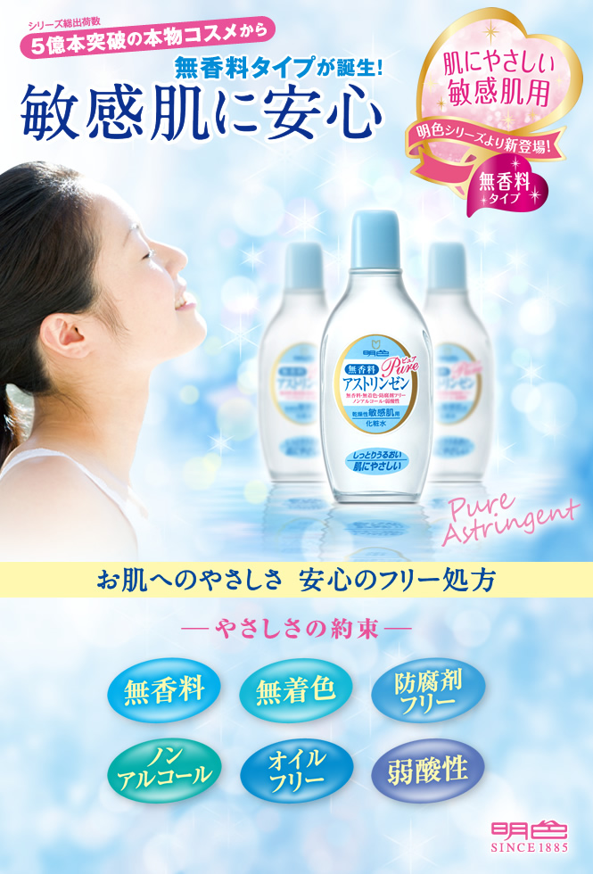 お肌へのやさしさを一番に考えた、敏感肌にも安心のフリー処方『明色 無香料アストリンゼン』のモニターを200名様募集いたします!