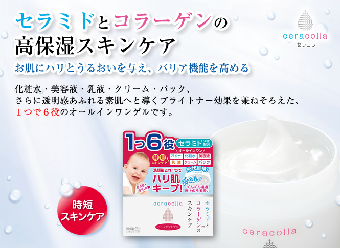 セラコラ パーフェクトゲルセラミドとコラーゲンを配合した「セラコラ」シリーズから新登場赤い蓋がいい感じ中身はこんな感じで半透明のぷるぷるのジェルです化粧水美容液乳液クリームパック、さらに透明感あふれる素肌へと導くブライトナー効果を兼ね備えた、1つで6役のオールインワンゲルなんですこれだけの効… 2014/11/01