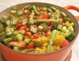 少し前に作ったピラフです10月というのにまだまだオクラが豊富に出回っていたので主人も私も大好きなピラフですこんなときは沢山食べたいので、具沢山にしておかずはサラダとスープくらいでメインとしていただきますクルーゼでピラフを炊くとやっぱりなんだか美味しい火の通りやすいオクラ、パプリカ… 2012/10/24