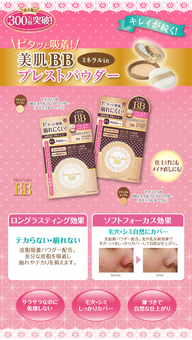 ピタッと吸着!崩れにくい ミネラルin 美肌BBプレストパウダー レビュー数 : 137 |