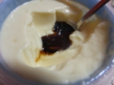 原材料名:生乳、卵、砂糖、植物油脂、乳製品、果糖、洋酒、デキストリン、乳等を主要原料とする食品、バニラビーンズ、香料、乳化剤(大豆を含む)