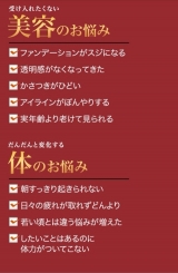馬プラセンタに、デルマタン硫酸、低分子コラーゲン、コンドロイチン、ヒアルロン酸、など、20種類の美容成分と健康成分をバランスよく配合したサプリメントです。内側からバランスを整えて毎日の美しさと健康をサポートします。