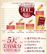 馬プラセンタに、デルマタン硫酸、低分子コラーゲン、コンドロイチン、ヒアルロン酸、など、20種類の美容成分と健康成分をバランスよく配合したサプリメントです。内側からバランスを整えて毎日の美しさと健康をサポートします。