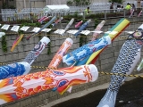 昨日西武ドームに行く途中、西武線に乗り換えるため高田馬場で下車したのですが、こんなのを発見しました 神田川を泳ぐ鯉のぼりです高田馬場駅近くの