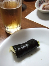封筒の中から、また封筒が出てきて、ちょい意外な驚きが(そこかよ)^^; その中から、やっと海苔さまの登場厳重に密閉されてる モノがモノだけに当たり前か 普段、食用している海苔と比べると、少々薄い感じ また、これといって海苔の香りは感じない しかし、思うにこれが福沢さんだったら(−_−; この日のご飯は十六雑穀米だった それでおむすびを握り、貼ってみる この時点でも、特に海苔の香りは特に感じなかった 海苔が薄いから(?)握り飯に巻きやすそうだ ご飯の蒸気のせいか、海苔がピカピカして綺麗で旨そうだ 「数分置いた後、海苔の良い香りが」と記されていたので、しばらく様子見 ←その間に、ビール(第三のビール)のつまみを作った 頂いた海苔を二等分して、とろけるチーズをかけ、有り合わせのモノを乗せる今回はオクラの小口切りと枝豆、あと塩コショウね オーブンで焼いて出来上がりパリパリになるとせんべいみたいでいいのだが、今回は失敗した(申し訳ない) 仕方ないので巻いてスティック状にこれはこれで結構うまかった さて、おにぎりは? 「あ、いい磯の香りがするね」(かあちゃん談) 当たり前といえば当たり前なんだろうが、おにぎりをほおばると、良い海苔の香りがする 普段食べ慣れている海苔との具体的な違いは特に感じられなかったが、大変おいしく頂いた ご馳走様でした! 五代目 新蔵ファンサイト応援中 有限会社 大橋新蔵商店 【楽天】五代目 しん蔵 訳あり!焼海苔 無撰別 五代目 新蔵のブログ 続きを見る ['close']
