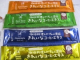 「きれいなコーヒー」オアシス珈琲ファンサイト参加中きれいなコーヒー4種類が届きましたので飲み比べなんぞをしてみました届いた4種類とはキリマンジャログァテマラブラジルオアシスブレンド入れ物は、コーヒーには見えない気もしないことはないですねきたからには飲んでみますエキスという名の通り、粉ではないですさらっとした液体ですお湯を入れて薄めたあとにホイップした牛乳なんぞを入れてみました調子にのって入れたせいかあんまり苦くないです次に飲んだ時はお湯を入れた時点でそのままで一度飲んでから、ミルクを入れました?(_)?(_)?ん、苦くない牛乳のせいじゃなかったのか砂糖とか入っていないけどこのまま飲んでも、大丈夫かも飲みやすいですでも、苦みが欲しい人には不向きかもしれないです逆に液体だけに色々なものに混ぜやすいです苦みがないから、お菓子系のものに使っても問題ないかも…苦みが弱いですけど、4種類とも味が異なるのはわかります残念なことは、今のところ、この4種類だけのようです違う味は、でることを期待しましょう