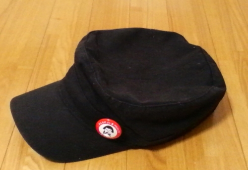 黒の帽子に赤が映えます