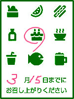 ↑こんなのとかペタンと押して、上から色ペンで、例えば3/15日くらいまでに食べて欲しいお菓子ならこんな感じ↓