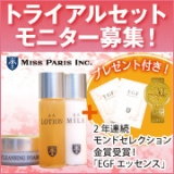 藤原紀香さんの美しいCMで有名な「エステティック ミスパリ」 その「ミスパリ」に通販サイトがあるのをご存知ですか? サロンクオリティが、オンラインで気軽に購入できるのは嬉しいですよね! 仕事や家庭でサロンに行くにはちょっと時間がという忙しい方や エステティックサロンが近所になくてという方にも サロン品質のホームスキンケアが自宅で可能なんですよ 【ミスパリ エイジングスキンケアセット】は、 プラセンタエキスやヒアルロン酸などを贅沢に配合 洗顔から保湿まで基本のお手入れ全てを揃えた 医薬部外品のエイジングケア用スキンケアセットです その「ミスパリ」オススメのエイジングスキンケアトライアルセットの モニターを、現在募集中でございますわよ 「トライアルセット」の内容は ミスパリ クレンジングフォーム(8g)プロの洗顔力をご家庭で! ミスパリ AAローション(10ml)1本でエイジングケア化粧水! ミスパリ AAミルク(10ml)水分を一滴たりとも逃しません! これに、さらなる特典付き 2010、2011年と2年連続モンドセレクション金賞受賞した 「EGFエッセンス」のサンプルとコットンセットもプレゼント エイジングケアに興味がでてきた方、美意識の高いアナタ、 この機会にモニターに応募してみてはいかがですか? ピカもぜひ「ミスパリ」のサロン品質を体験してみたいと思います 応募はこちら 【お肌のくすみシワが気になる方】追加募集中ミスパリ 続きを見る ['close']