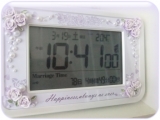 記念日をカウントする注目の電波時計ファンサイト応援中本日より挙式披露宴までのカウントダウンを始めましたカウントダウンしてくれるのはこの子ですめちゃ可愛ぃでしょ左上には日付が入っており右上には気温も表示されるんです(204℃って確かにあたたかいです)ちなみに日付と時間の場所を逆にすることも可能なんですよこちらの時計は株式会社PASSTIMEさんのメモリアル電波時計なんです記念日までをカウントダウン記念日からはカウントアップしてくれるので6月5日の挙式披露宴に向けて只今カウントダウン中でございますゼクシィの首都圏版4月号(2/24発売)別冊【演出&ウェディングアイテム】にも掲載されているみたいですちなみに誕生日もセット出来るんですよなので出産祝いとかに贈り物としても良いなぁって思います記念日には天使のアイコンが点滅するんですまたその天使が幸せ感を倍増してくれそうですよねさて今回時計のデコレーションシートに好きな言葉を入れていただけるとのことだったので【Happiness, always as ever】という言葉にしました【これまでも これからも 幸せを】という事でこのメモリアル時計と一緒に幸せな時を刻んでいきたいなってちなみに文字上部ではしっかりカウントダウンしてくれてますデコレーションシートですが付属で他に4枚入っておりました一番下のは保護シートですホームページからもこれ以外のデザインがダウンロード出来るのでいろいろなデザインで飾ることも出来るんです私は挙式披露宴の当日に受付にこちらの時計を置きたいなと思ってます当日まではこんな感じで自宅で飾ることにしました日にちがだんだん迫ってきて式の準備が進んでなかったら焦りそうなので出来ることからどんどんやっていかなくちゃですちなみに私が選んだのは前から2番目のパープルです 続きを見る ['close']