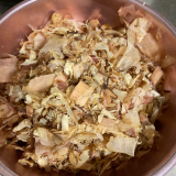 マルトモさんで〈鰹節でフードロス対策!〉だし取り後のだしがら活用レシピ募集というモニターに当選させていただきhref="https//statamebajp/user_images/20221121/20/tg017098/8f/0c/j/o1080144015206200168jpg">花かつおと混合削りぶし、おまけの鍋つゆをいただいていました先日からだしがらの活用の仕方を考えていましたが、本日完成かつお節、宗田がつお節、さば節、むろあじ節の混合削りぶし「だしの力」はいろんな魚を使っているから複雑味のある濃厚なおだしがとれます12リットルの水に削りぶしは50グラム沸騰したお湯を火を弱めてから削りぶしを投入5分ほどふつふつさせて煮出し、火を止め削りぶしが沈んだところをこして使いましたコクのあるガツンとしたおだしで作ったのは芋煮です里芋、牛肉、ごぼうにきのこなど入れて作った芋煮贅沢なおだしのおかげでとっても美味しく出来ましたその時にできただしがらは乾燥時50グラムとたっぷり大量〜!で、こちらのだしがらを活用して作ったのはだしがらがたっぷり入ったお好み焼きお好み焼きの種にどっさり加えて作りましたでもね、全然違和感ありませんでしたトッピングにも追い鰹節したくらい、お好み焼きと鰹節って合いますもんね具材はキャベツ、玉ねぎ、こえび、魚肉ソーセージを使って作ったお好み焼きだしがらのおかげで、うまみたっぷりのお好み焼きに仕上がりました今日は昼に花かつおを使いました600ccのお湯を沸騰させ、火を弱めたところに加えるのはきれいな花かつお20グラム2分ほど弱火で煮出したあと出来たおだしがまさに黄金だし!もうね、これだけ飲んでも美味しいおだしですこのおだしを使ってキツネうどんを作りましたお揚げは甘辛く味付けしてうどんの上にどーん!このうどんもすごく美味しかったのいつもはつゆを残す夫が飲み干してました(笑)やっぱり丁寧にだしをとると美味しく仕上がりますねで、このだしがらを活用したのが野菜炒めですだしがら、牛肉、小松菜、もやし、人参、玉ねぎ入りだしがらは一口大にして片栗粉をまぶして焼き付けて取り出しておきます牛肉と野菜を炒めた中にこのだしがらもインあとは味覇とオイスターソースで味付けして出来上がりこちらがだしがら食べると中からじゅわっとおだしが出てきて美味しいのお肉と遜色ない美味しさなんですもん、もうね、びっくり!だしがらが立派な食材の一つとして使えることに気付かされました美味しいだけでなく面白い体験をさせていただいたマルトモさんに感謝!ですマルトモファンサイト参加中 続きを見る ['close']