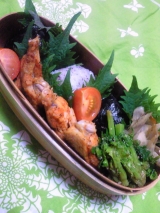 今日からまた一週間のスタート しかもまたまた寒い一週間になりそうですね でも、今週は間に一日お休みを頂いて、「お楽しみ」があるので、それを楽しみに頑張ろうと思います そうそう、お休みと言えば、うちの夫は実家の用事で今日はお仕事お休み なので、お弁当は私の分だけ ラクラク こんなお弁当になりました ミニおむすびお弁当 ミニおむすび 3ヶ 手羽中のピリ辛焼き なばなの胡麻和え ごぼうペペロン ミニトマト お弁当タイムを楽しみに、今日も頑張ります では、行ってきます レシピブログに参加しています 唐揚げレシピが商品化!?唐揚げアンケートでお肉とトートバッグゲット! 続きを見る ['close']