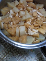 連日の寒さで大活躍のストーブ 昨夜はまたプラスアルファのお仕事をしてもらいました 昨日のへんてこりんな大根の一部と油揚げで煮物を作りました お出汁、お砂糖、お醤油、みりん、お塩を合わせたところへ大根と油揚げを入れて、後はストーブにお任せ ほんのり甘めの美味しい煮物になりました 今夜になるともっとお味が染みて美味しいでしょうね でも、今夜まで待てないってことで、一足お先にお弁当に入りました ネギ入り卵焼き ミンチかつ(冷凍食品) レンコンのキンピラ 白菜の浅漬け 大根と油揚げの煮物 ミニトマト ふりかけご飯 では、行ってきます レシピブログに参加しています 40年のロングセラー本格的なだしが取れる「だしパック赤袋」モニター30名募集 続きを見る