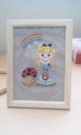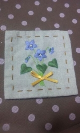 こんにちはっ!ほんとにほんとに久しぶりの更新♪ちょろちょろと刺繍をしたりしたので今日はそれを載せようとおもいますこれはスミレのコースター周りの