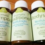 最近仕事でもやもやっとすることがあり、グッスリ寝れない、寝つきが悪い日が続いています何か良いものない?と見つけたのが、ref="http//wwwaromaverajp/" target="_blank">【アロマベラ】のレストフルナイトのシリーズ;シャンプー、コンディショナー、ボディーソープちなみに「レストフルナイト」というのは、4つあるうちの香りの1つラベンダー、カモミールローマン、ティーツリーなどが入っています①アロマティック シャンプー 50ml(ノンシリコン) ②アロマティック コンディショナー 50ml(ノンシリコン)③ボディソープ 50ml香りは天然精油をどれも使っていて、私の使ったレストフルナイトの他に、★ストレスを感じた1日の終わりに;ラベンダー、タンジェリン、イランイランなどの香り→リラクゼーション★はつらつとした1日の始まりに;ペパーミント、ローズマリー、レモンなどの香り→エナジー★気分をすっきり変えたいときに;グレープフルーツ、レモン、サイプレスなどの香り→ボディートーンとあります私はティーツリーの香りが好きだし、寝付きよく、良く寝れるようになりたかったので、レストフルナイトをシャンプー、コンディショナーはノンシリコンなのに、全然キシキシしません私はコンディショナーをほんのちょっと使うか、シャンプーだけにすることが多いのですが、それでも髪の毛かなりしっとりボディソープは香りもいいし、潤うし、洗っているときのティーツリーの香りは本当にたまりませんな良い香りこの3アイテムのほかにもロールオンタイプとかミストとかトラベルサイズも合って、それも気になりましたアイテムにより、4種類全部の香りがそろっていないものもあるので、特にトラベルサイズには、それこそ旅先で練れない時用にレストフルナイトが欲しいと思いました香りって、大事ねおかげで少しはよく寝れるようになりました日本香堂ファンサイトファンサイト参加中 続きを見る ['close']