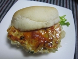 つくねの生地にしそを加えたつくねバーガーを 梅干しと梅酒で作った梅酒ソースで味付けしました 酸味のある梅干しで夏バテ防止です