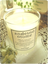 ゆらゆらと揺れるキャンドルの灯りは幻想的でロマンティック 慌ただしく過ぎていく日々に「安らぎ」と「癒し」をもたらしてくれます 灯りをただ見つめているだけで気持ちが和やかにアロマキャンドルの魅力は香りまでも楽しめる贅沢感 最高の「リラックスモード」へと突入します 『voyage』シリーズは、上品かつ個性的な香りで「心の旅」をイメージ 洗練された香料を使い、調合を繰り返し試した結果、優雅で贅沢な香りが誕生 インテリアのスパイスとしても最適 ! 付属品としてマッチもセットされています(画像撮り損ねた) 24種類の香りの中からセレクトしたのは「アンデスの乙女」 ほのかな甘さとスパイシーな神秘の香りが部屋中に広がります キャンドルの灯りと香りを楽しみながらの美顔器タイムは極上のエステタイム 自宅にいながら贅沢な気分を味わえます サイズ:φ74×H88mm 香り:24種 容量:200ml 燃焼時間45時間 製造国:日本 続きを見る