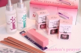 久々にネイルネタ行きます!モニプラさんでネイルキットをいただきご紹介させていただきます楽天で売られている超お得なキットですほぼすべてが揃って3980円、まぁ最低限の内容ですが、十分です!それを踏まえたうえでご覧になってください♪【セット内容】■ベースクリア■トップクリア■カラージェル(お好きなカラーを1色お選びください)■LEDライト3W■エメリーボード×3枚■スポンジバッファ■ウッドスティック×5本■ジェルクリーナー■リムーバー■ファイル■ジェルネイル説明書アート用のシールやストーンは含まれていませんが、メール便などを利用して個人で好きなものを買うのがベストではないかと思いますジェルはすべてマニキュアボトルに入った形状でとっても可愛い!!エメリーボード(茶色)は爪の長さや形を整えるに使用、ピンクのスポンジバッファーは目が荒いのでサンディングといって、爪表面に傷を入れるのに使用一番左のはオフするときに表面削ったり、甘皮周りに使用するのがいいかも!爪の表面をこれですると、力加減がうまくできない方は、爪を削りすぎて傷む原因になるので要注意です!で!!!!!!!!!!!!なぜ私がこのキットがお得かといいますと全く無名のネイル用品ではなく、私たちプロの卸が扱ってるメーカーが入ってるからですこのグレーのファイル、実は私も長年愛用していて、左2つは私の持っているストックですcan Iというネイルブランドで、ジェルだけでなくケア用品やマニキュア、スカルプ用品もあります値段も結構します!ブラックはスカルプを削るもので、ジェルのオフするときにも使っていますずっと使っていると表面のヤスリが減ってきて、色もうすーーーくなりますcan Iの画期的な商品がありまして、トップジェルでマニキュアタイプ、UVランプで3分硬化、完全硬化ハイシャインジェルがこれスカルプの仕上げに使ったり、ジェルの仕上げで使うときれいに輝き、ぬるっとした未硬化ジェルが出ないのですごくいいんです!!!これもプロ卸で購入です写真に写ってる箱も私物です、卸で買うと箱に入れてくれたりするので、そのままネイルデスクの整理に使用していますということで!ここのメーカーは、長年ネイル業界のものw扱っているので私としては信頼していいと思えるものですクリアジェルカラージェルトップジェルどれも可愛いですジェルリムーバーもクリーナーも色分けされててわかりやすい!!ジェルはボトルトップにシールで区別されていますライトはなんと3W私としては正直3Wで固まるの?私が使用してるのは12W 32Wなので足りなくないかな?と不安がありましたが、しかーーーーしちゃんと硬化して、しかもカラージェルは30秒で未硬化ジェルも少なくてびっくり!!指起きがあるのも便利ですね、フットの時は外して使えます電池使用もOK,コンセントでもOK!電池ってポータブルになるので便利ですね!!いま私の手には営業用で新色が塗られているので、サンプルチップに塗ってみました使用カラーは桜っぽいシャーベットピンクです左が一度塗り、右が二度塗り1度塗りで十分な発色!!!!!!!!!!むしろお仕事柄あまり派手なものはというお客様に1度塗りを勧めたい!2度塗ると色ムラもなくなり、綺麗なパール感がでましたカラージェルは程よい固さがあり、横に流れるのを防げますトップジェルはぷっくり感が出せるやわらかさがあり、最高^^個人的に仕上げのトップジェルはやわらか目が好きです硬いと刷毛の型が残りやすいし、ストーンなどのコーティングが不十分になりやすいです未硬化ジェルは一応でます、でも、ベタベタしにくい、かなり硬化率のいいジェルです!仕上げにクリーナーで拭き取りますが、キッチンペーパーを小さく切っておくと便利です私はコストコのキッチンペーパーを使っています大判で柔らかく、毛羽立たないし、カットしても破れないでいいです!クリアジェルも塗りやすいですリフティングといって、爪から浮きやすいかどうかという問題ですが、これは製品の善し悪しもありますが、いかに指まわりに付かないで塗るかがポイントです♪総合評価として、値段はかなり安いのではないでしょうか?ただ3Wというライトの威力が少ないのでもし手持ちのジェルや今後買うジェルの周波数を考えると大きめのアップグレードされたワット数の大きいものがいいと思いますでもね、セルフネイラーさんって、とりあえず安くでキットが買えて自分で出来る範囲できれいになりたいと思うわけですから、3980円で好きな色1色ついてて、マニキュア塗るよりきれいに仕上がるんだったら買いでしょ!(あ、もう流行終わったねww)あ、それとジェルクリーナーの臭いがすごくいいのにびっくり!クリーナー臭さがなく、いい香り♪これの業務用サイズ欲しいですwwwこれからセルフネイル始める方是非参考にして頂ければ嬉しいです7マルシェ ファンサイトファンサイト参加中【送料無料】【ジェル初心者さんでも簡単!】<エトゥベラ>ミージェルスターターキット(ジェ